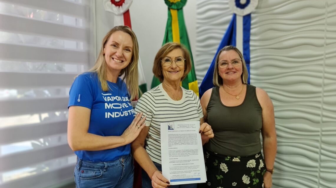 A assinatura do termo contou com a presença da presidente da Apae, Diana Sabrina Hellmann, da diretora Gilvani Kniess e da prefeita Anadir Koch Belli.